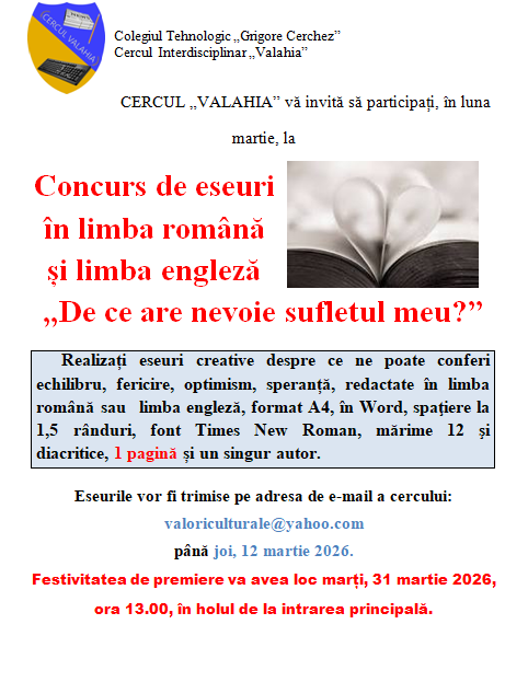 CONCURS DE ESEURI ÎN LIMBA ROMÂNĂ ȘI LIMBA ENGLEZĂ „DE CE ARE NEVOIE SUFLETUL MEU?”